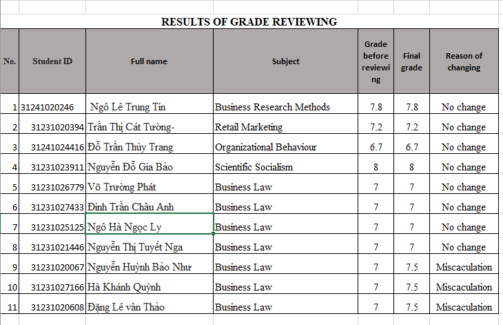 Results of grade reviewing trimester 3 (24-25) second time