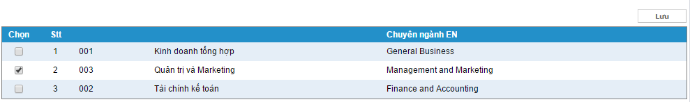 Step 3: Click Đăng ký học --> Đăng ký chuyên ngành--> click to choose the specialization-->click save.