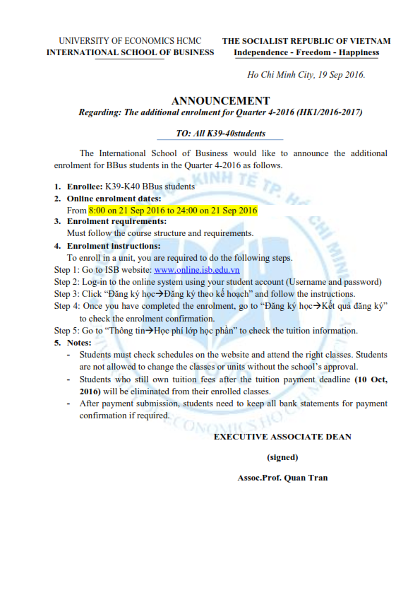 K39-K40 Enrollment for the 2nd supplementary Q4.2016 (HK1-2016.2017)