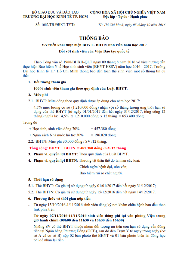 Đăng ký BHYT- BHTN sinh viên năm học 2017