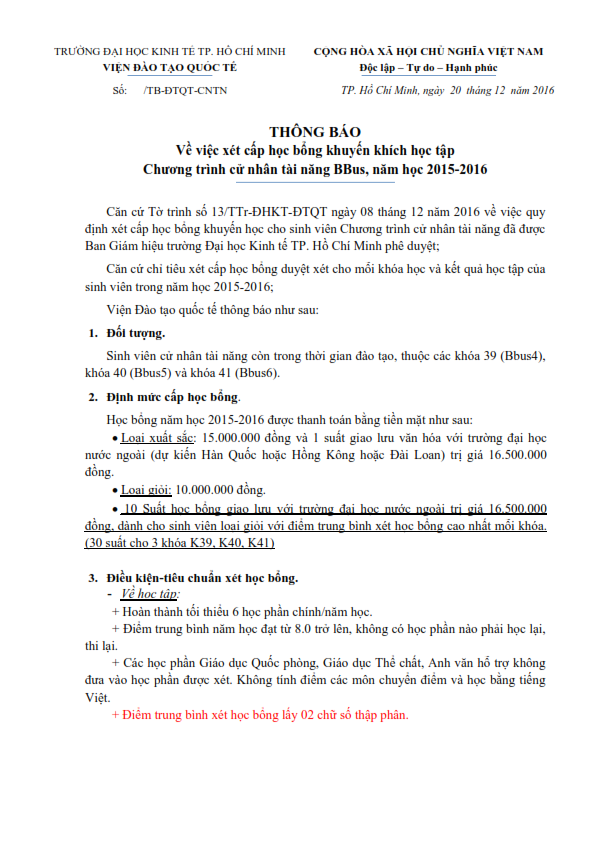 ISB.BBus Học bổng khuyến học năm học 2015-2016
