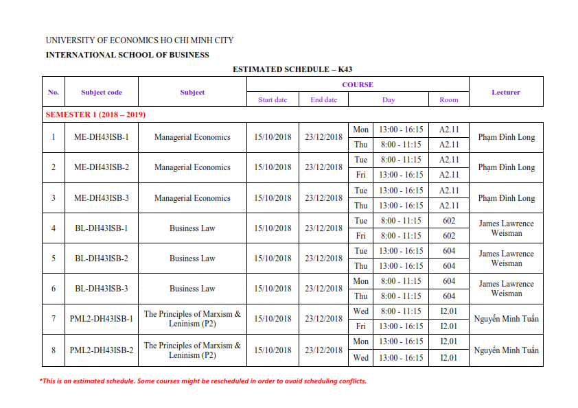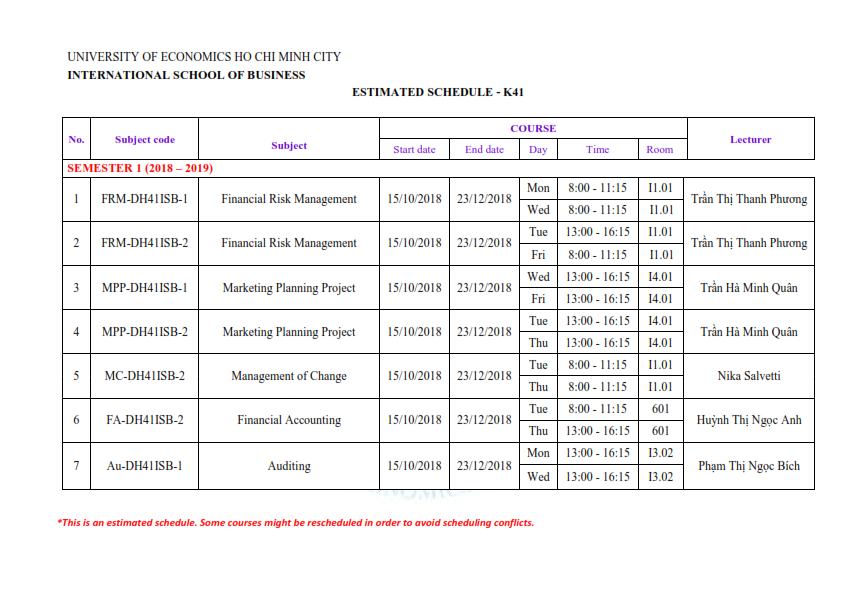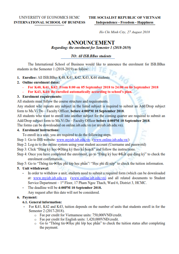 [ISB.BBUS] - ENROLMENT ANNOUNCEMENT FOR SEMESTER 1 (2018 - 2019)