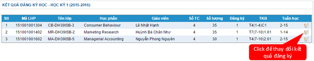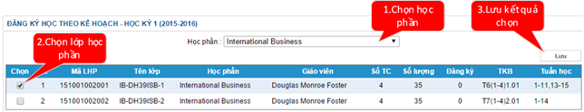 Chức năng này chỉ được thực hiện trong khoảng thời gian đăng ký học mà Phòng Đào tạo thông báo. Việc lựa chọn các lớp học phần phụ thuộc hoàn toàn vào sinh viên trên cơ sở đảm bảo thời gian và các quy định về số tín chỉ tối thiểu, tối đa, điều kiện tiên quyết, học trước, học song hành,…
