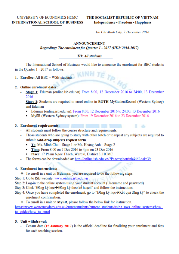 ISB.MBus The enrolment for Quarter 1-2017 (HK2/2016-2017)