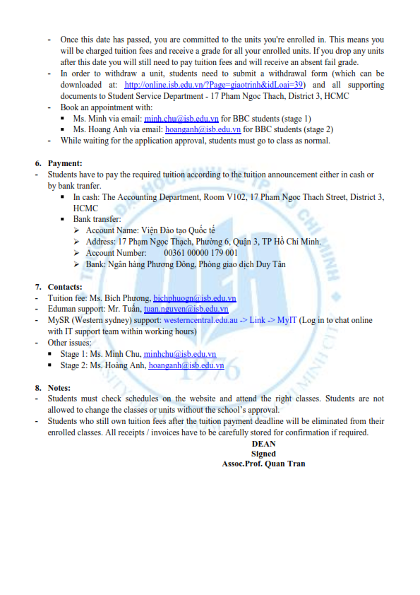ISB.BBus The enrolment for Quarter 1-2017 (HK2/2016-2017)