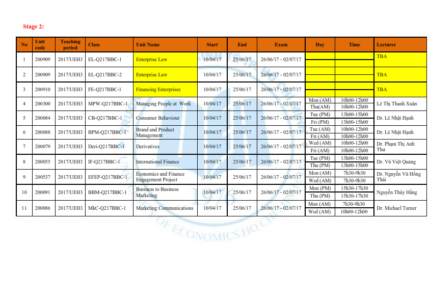 ISB.BBus The enrolment for Quarter 2-2017 (HK3/2016-2017)