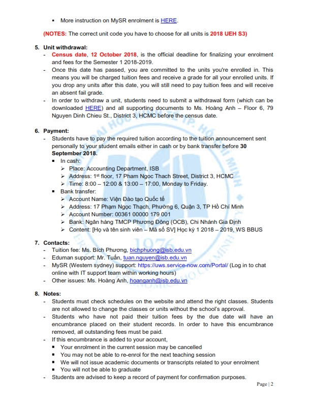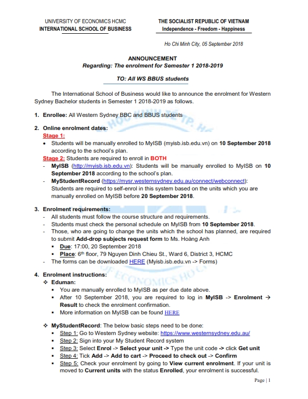 WS BBUS - Announcement for Enrolment S1 2018-2019