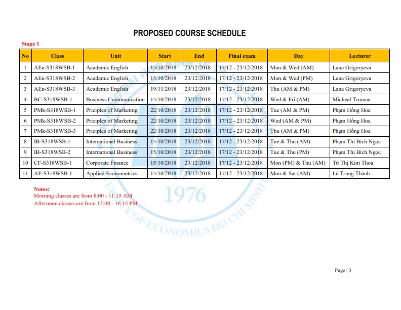Expected student list for Semester 1, 2018 - 2019 can be founded at these links: STAGE 1 and STAGE 2