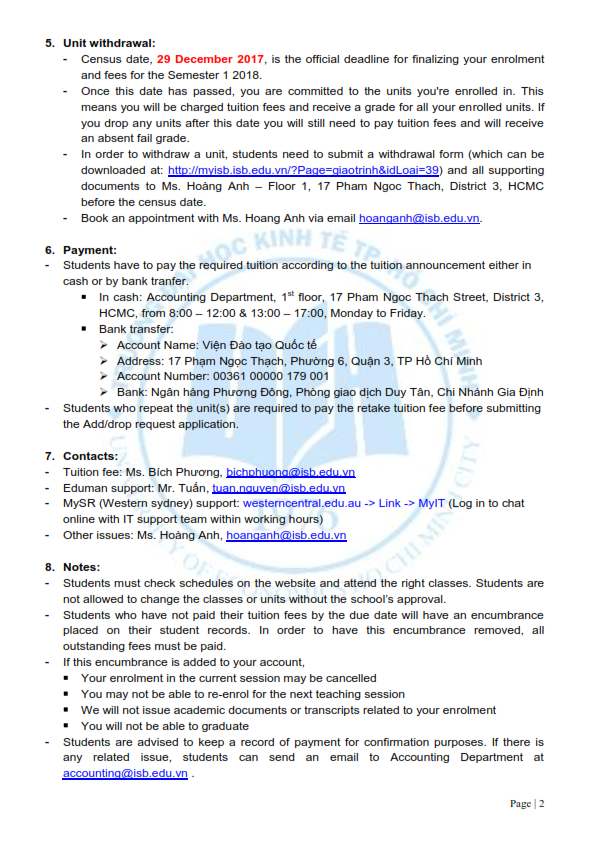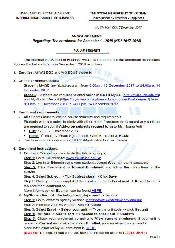 ISB.MBUS8 - Announcement of Enrollment for Quarter 2-2018 (Semester 3/2017-2018)