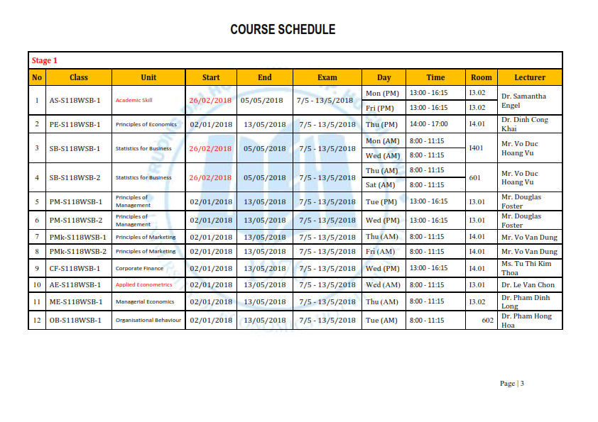 Western Sydney BBUS - The enrolment for Semester 1 2018 (HK2 2017-2018)